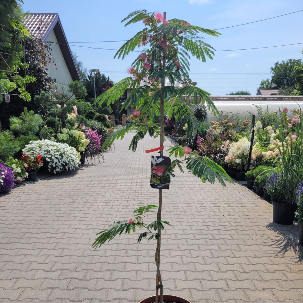 - W ogrodzie: Albicja jedwabista to doskonały wybór do ogrodów przydomowych, gdzie pełni rolę rośliny soliterowej. Jej egzotyczny wygląd sprawia, że jest idealnym elementem ogrodów orientalnych lub śródziemnomorskich. Może być sadzona na trawnikach, w pobliżu tarasów lub jako centralny punkt kompozycji ogrodowej.