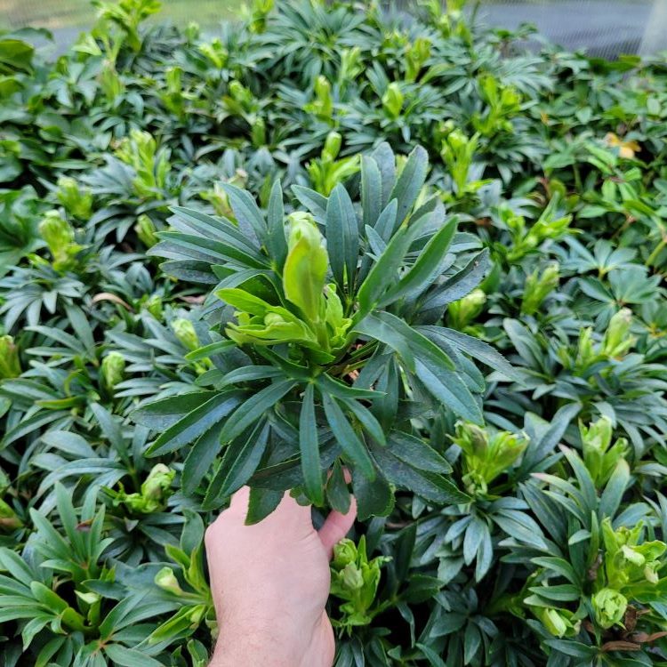 Odmiana ’Spring Chimes’ to niezwykle efektowny, zimozielony ciemiernik tworzący gęste kępy wąskich, mocno powcinanych liści o ciemnozielonej barwie. Wyróżnia się bardzo wczesnym i długim kwitnieniem – od późnej zimy aż do wiosny. Kwiaty są dzwonkowate, jasnozielone, z subtelnym, bordowym obrzeżeniem, zebrane w duże, rozgałęzione kwiatostany na szczytach pędów. Roślina idealna do cienistych rabat, pod okap drzew, do ogrodów naturalistycznych oraz nasadzeń leśnych. Jest odporna, niewymagająca i w pełni mrozoodporna.