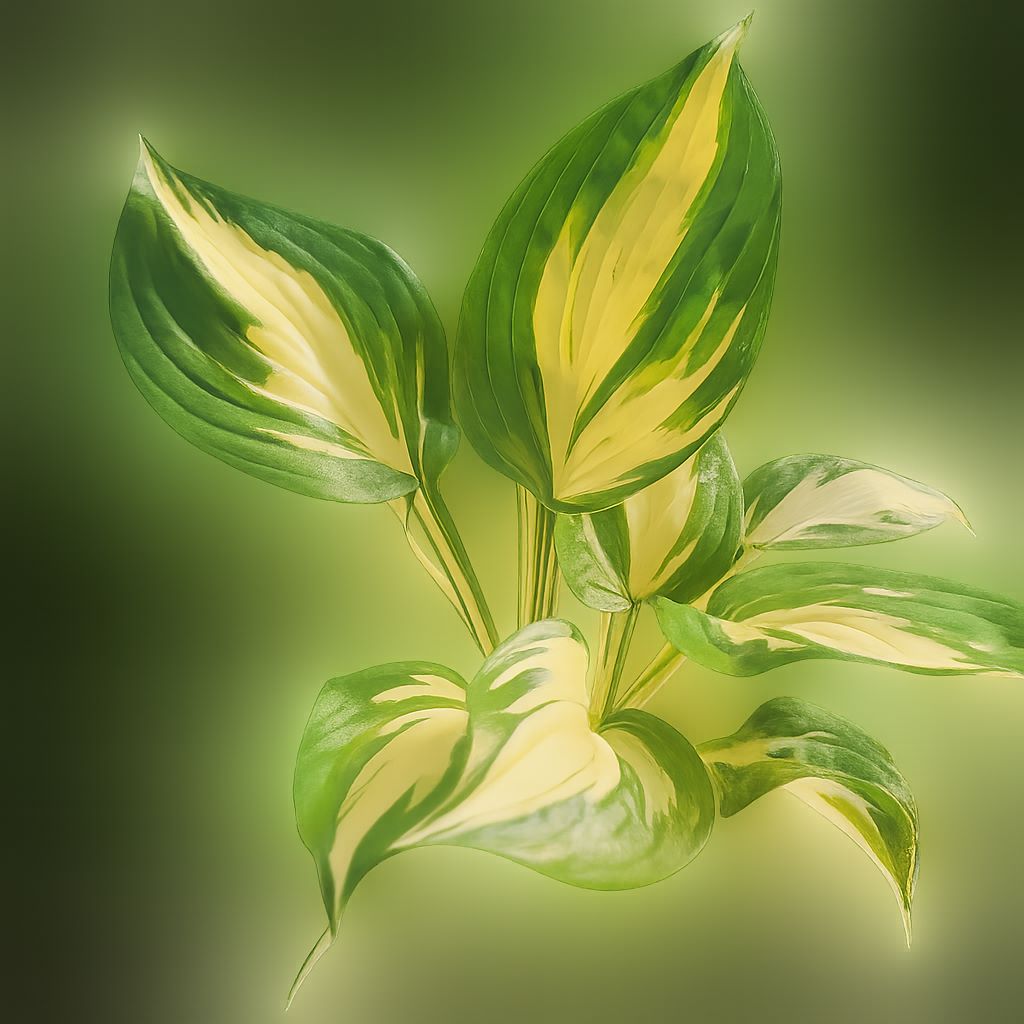 - Liście: To jej największy atut. Liście są sercowate, o lekko pofałdowanym brzegu i półmatowej teksturze. Wyróżniają się wariegacją typu „odwrotnego”: środek liścia jest kremowobiały (często jaśnieje do niemal czystej bieli w sezonie), otoczony szerokim niebiesko-zielonym lub ciemnozielonym marginesem.