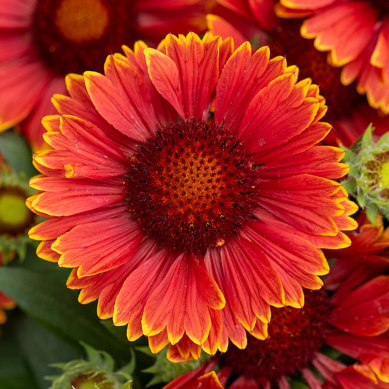 Gailardia 'SpinTop™ Yellow Touch’ (Gaillardia aristata 'SpinTop™ Yellow Touch’) to olśniewająca odmiana z popularnej serii 'SpinTop™’, która wnosi do ogrodu niezwykle intensywne, ogniste odcienie pomarańczu i czerwieni, z delikatnym, jaskrawożółtym akcentem na końcówkach płatków. Ta odmiana to prawdziwa „kołdra” ognia i słońca, która przyciąga wzrok i rozświetla rabaty od wczesnego lata aż do późnej jesieni. Jej obfite i długie kwitnienie, zwarty pokrój oraz wytrzymałość sprawiają, że jest to doskonały wybór dla każdego, kto pragnie dynamicznych i długotrwałych akcentów kolorystycznych, a jednocześnie chce przyciągnąć do ogrodu liczne motyle i pszczoły.