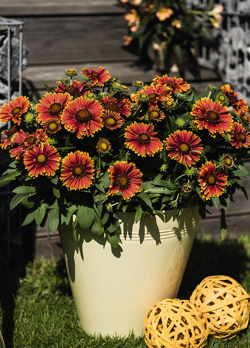 Dzięki swojemu płomiennemu kolorowi, długiemu kwitnieniu i kompaktowemu pokrojowi, gailardia 'SpinTop™ Yellow Touch’ jest niezwykle wszechstronna: