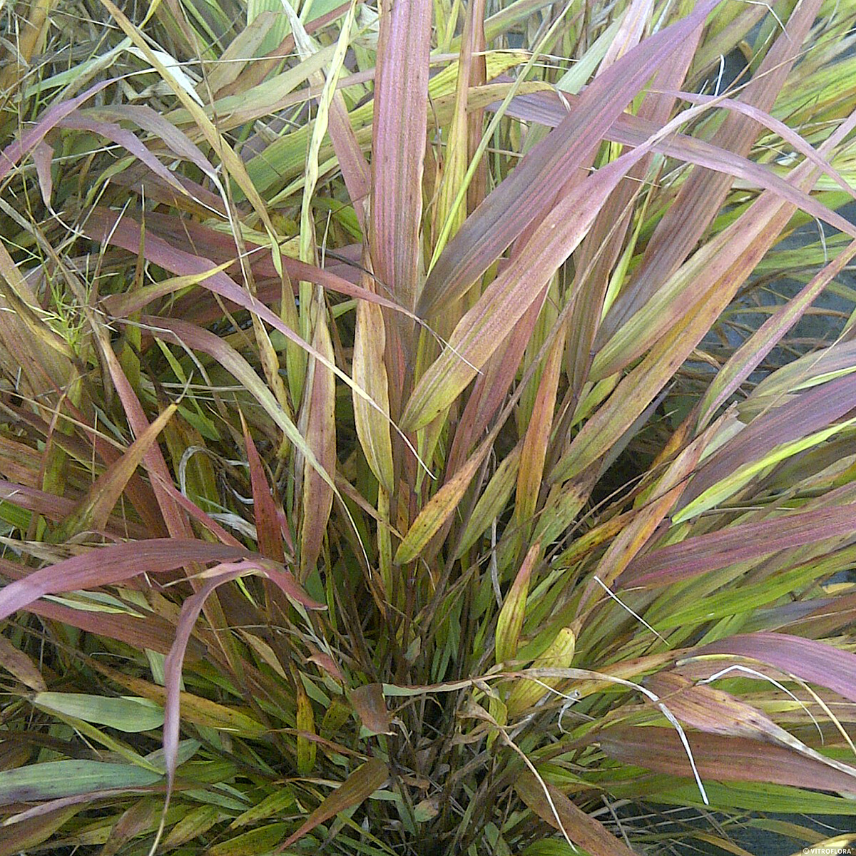 Liście 'Beni Kaze’ są długie, wąskie, miękkie i przewieszają się ku ziemi, układając się w gęste, półkoliste kępy przypominające kaskady traw. Latem utrzymują świeżą, soczystą zieleń, ale z nadejściem chłodniejszych dni – już pod koniec sierpnia – zaczynają spektakularnie się przebarwiać. Ich barwa stopniowo przechodzi w różne odcienie czerwieni, burgundu, bordo i fioletu, tworząc niezwykle malowniczy efekt.
