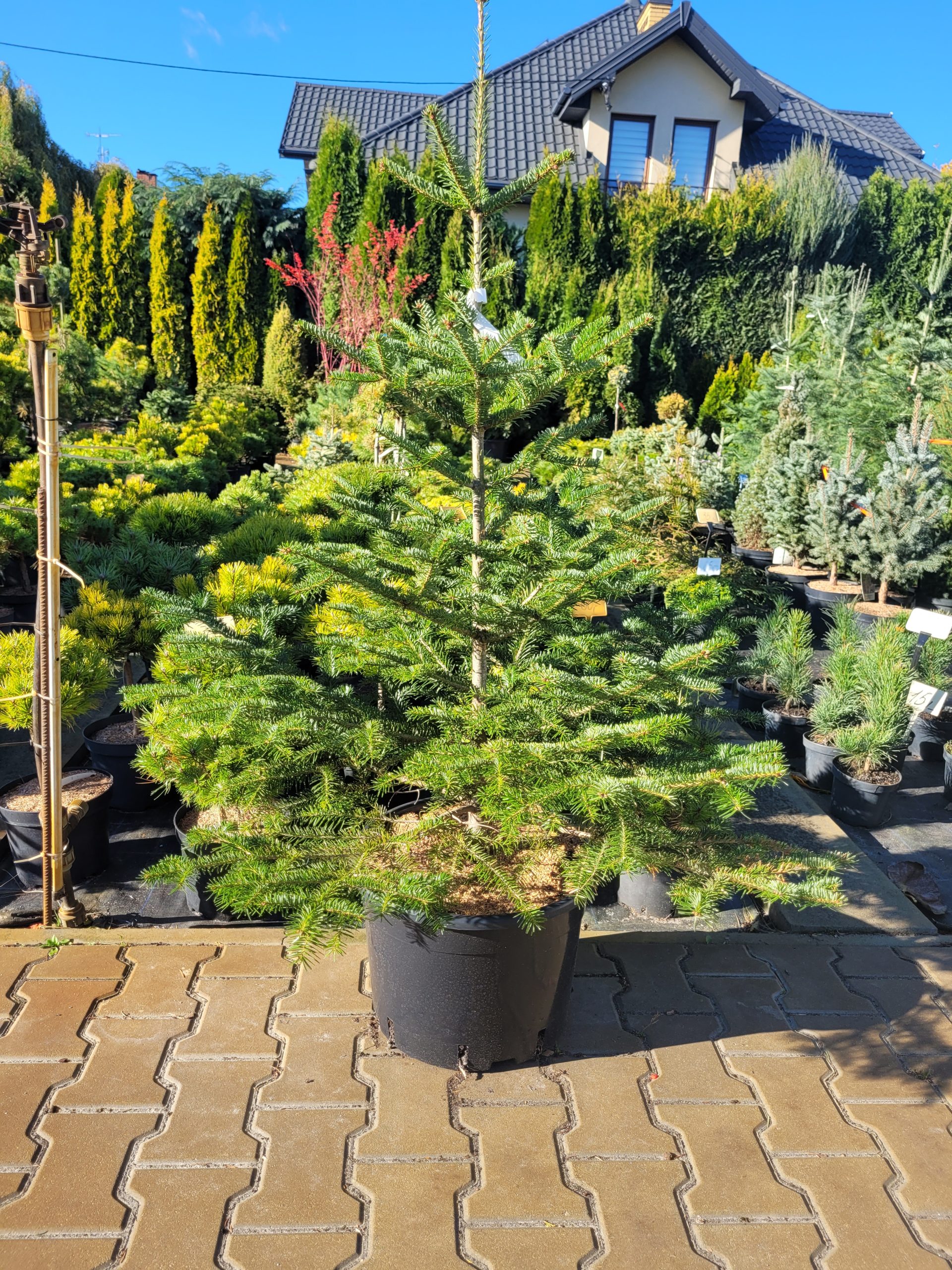 - Wysokość: W naturze osiąga od 10 do 15 metrów, choć w uprawie i jako drzewko bożonarodzeniowe jest zazwyczaj dużo niższa.