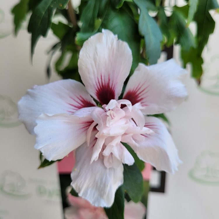 Ketmia syryjska 'Lady Stanley’ na pniu (Hibiscus syriacus 'Lady Stanley’ na standardzie) – Delikatna Elegancja w Bielach i Różach
