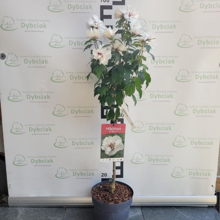Ketmia syryjska 'Speciosus’ na pniu (Hibiscus syriacus 'Speciosus’ na standardzie) – Klasyczne Piękno w Bieli z Purpurowym Okiem