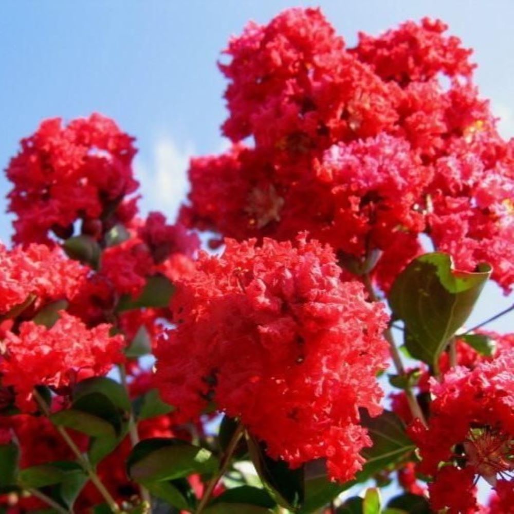 Czerwone, falbaniaste kwiaty Lagerstroemii 'Rubra’ tworzą efektowne, gęste wiechy, które pojawiają się latem – zazwyczaj od lipca do września, a nawet dłużej w cieplejszym klimacie. Kwiaty przyciągają wzrok z daleka i pięknie kontrastują z ciemnozielonymi, błyszczącymi liśćmi.