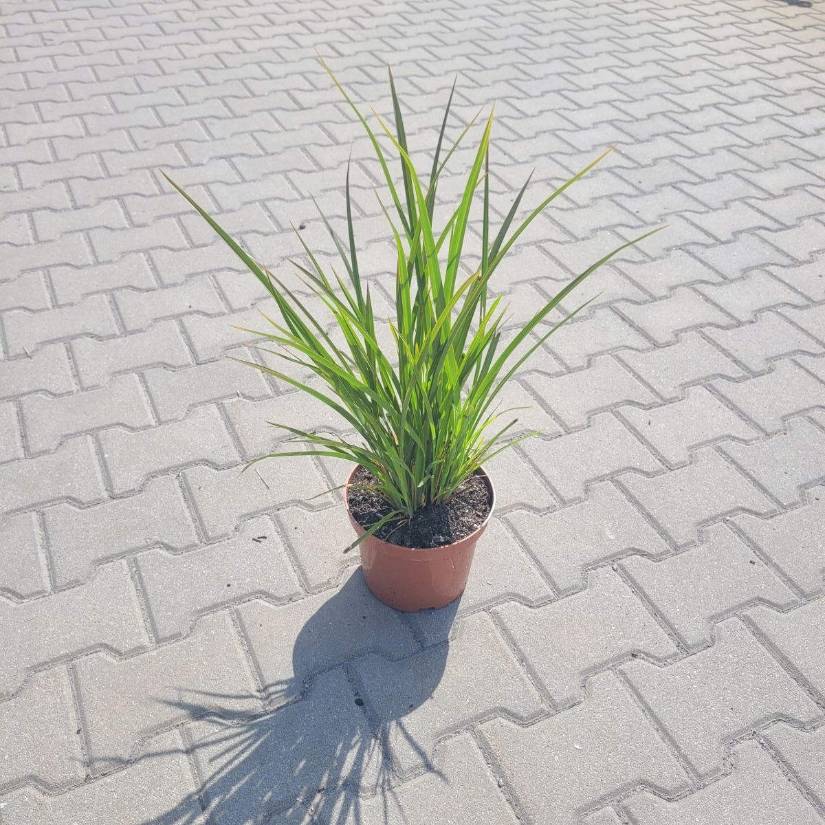 Liście są jej główną ozdobą. Są długie, sztywne, wyprostowane lub lekko łukowato wygięte, o mieczowatym kształcie. W przypadku odmian o zielonych liściach, ich barwa to soczysta, ciemna zieleń, często z subtelnymi, jaśniejszymi lub brązowawymi brzegami, co dodaje im głębi. Liście są zimozielone, co oznacza, że zachowują swój kolor przez cały rok, dodając struktury i życia ogrodowi nawet zimą.