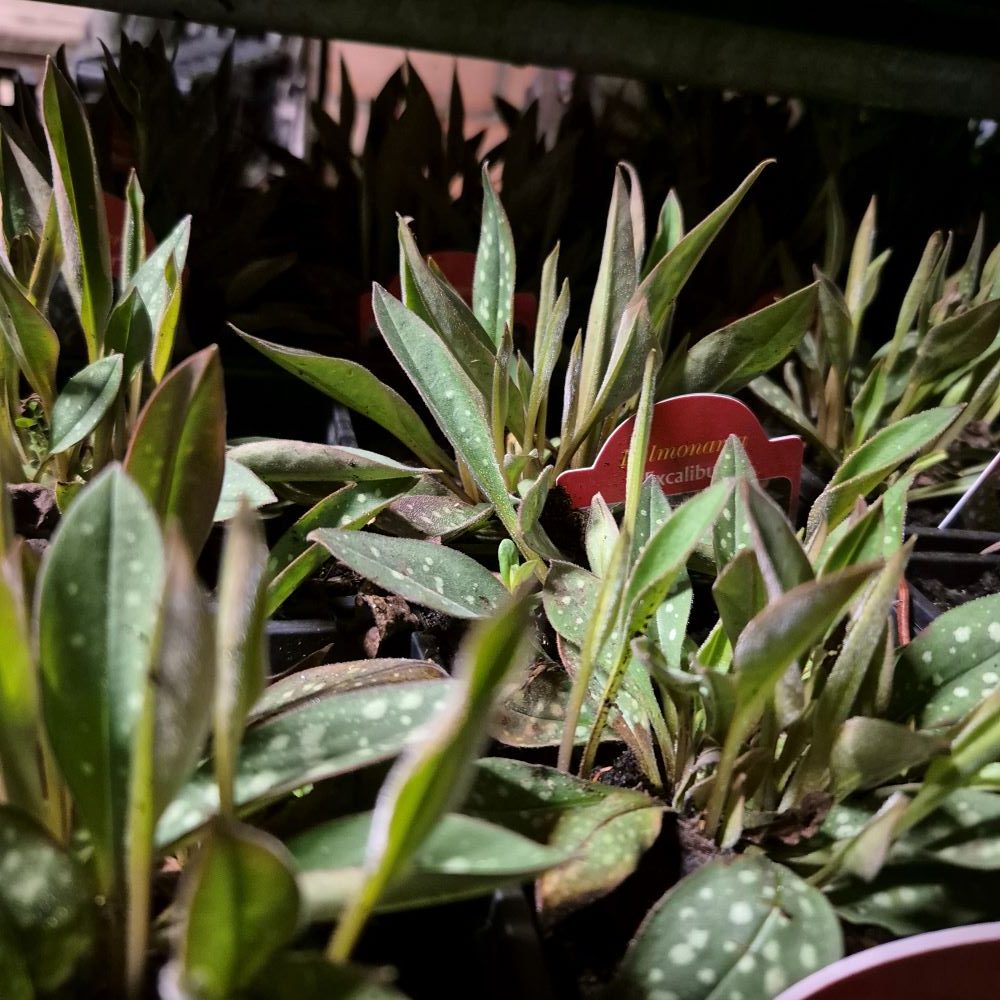 ✔ Liście: Długie, lancetowate, z wyraźnym srebrzystym wzorem – bardzo ozdobne przez cały sezon