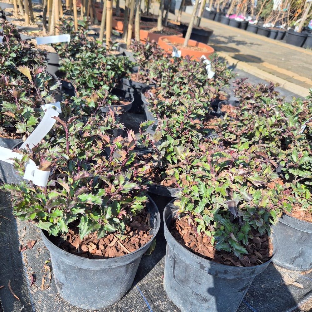 Ostrokrzew Meservy (Ilex × meserveae) 'Little Rascal’ to wyjątkowo dekoracyjna odmiana, która zachwyca gęstym, kulistym pokrojem, błyszczącymi liśćmi i intensywnym, bordowym przebarwieniem zimą. Jest to niska, kompaktowa odmiana idealna do małych ogrodów, donic oraz na obwódki. Dzięki swojej wytrzymałości i atrakcyjnemu wyglądowi przez cały rok jest chętnie wybierana do nasadzeń zarówno formalnych, jak i naturalistycznych.