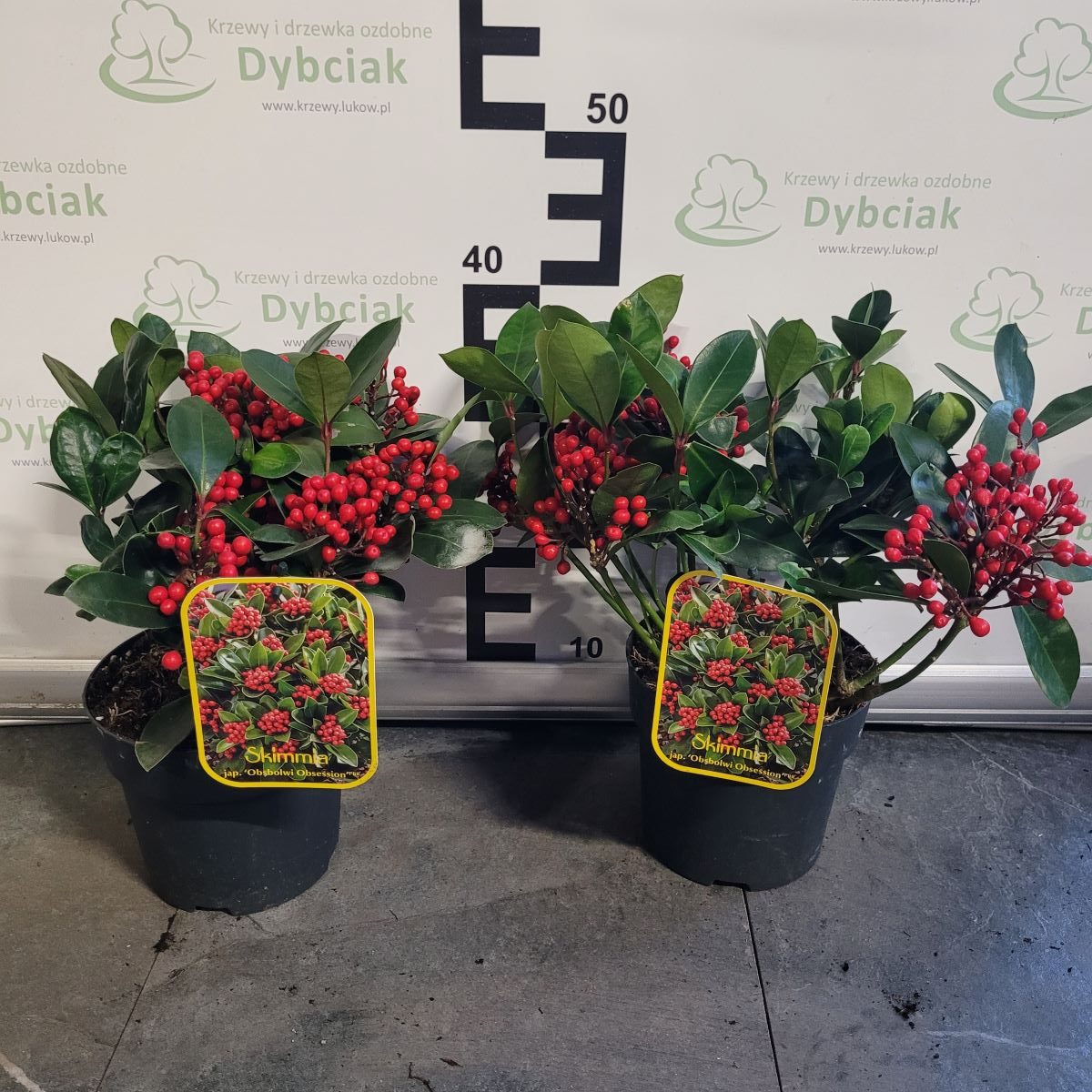 Skimmia japońska ‘Obsbolwi Obsession’ to wyjątkowo dekoracyjna, zimozielona odmiana, ceniona za liczne, intensywnie czerwone owoce przypominające korale, które pojawiają się jesienią i utrzymują się na roślinie przez całą zimę aż do wiosny. Dzięki nim krzew stanowi efektowną ozdobę ogrodu także w okresie bezlistnym.