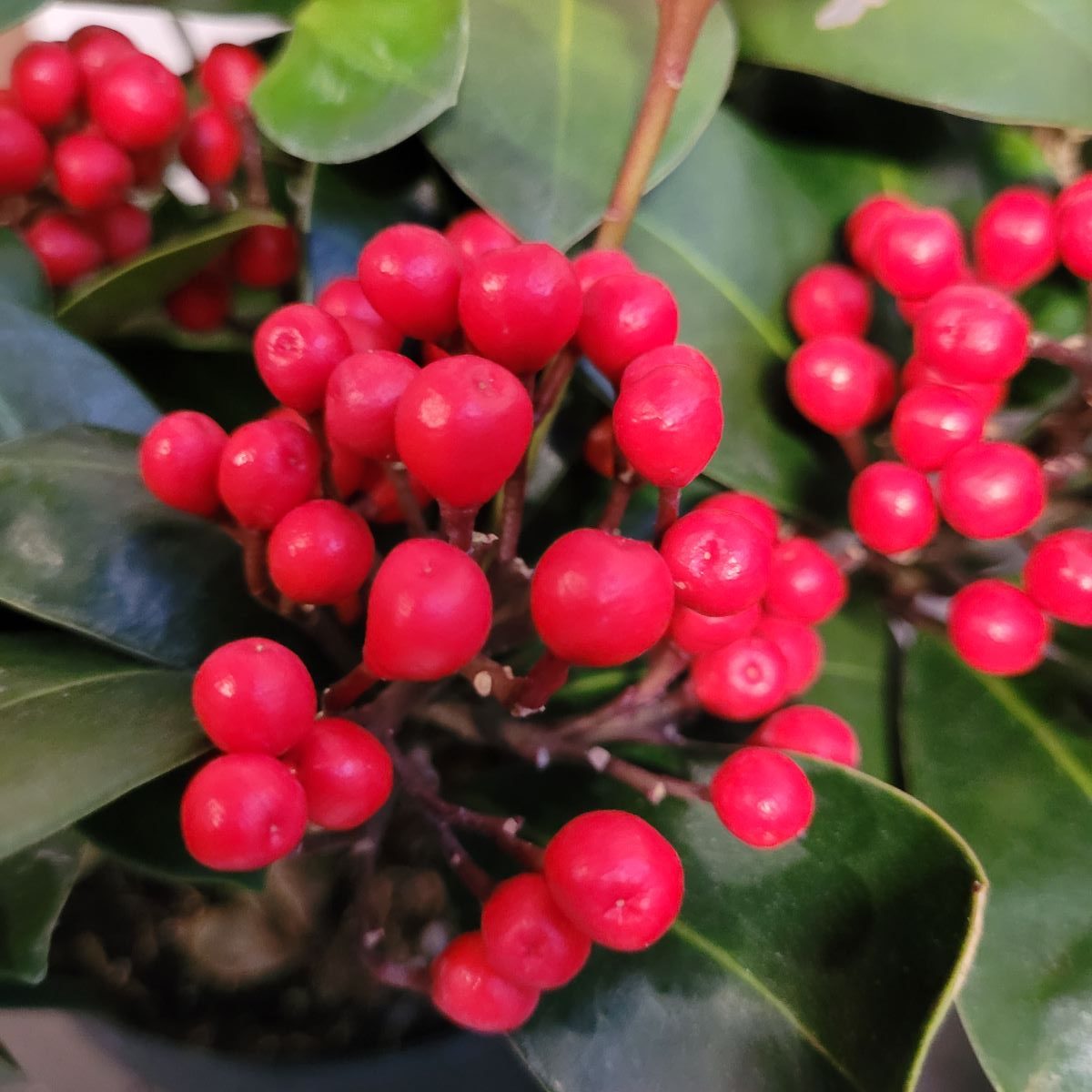 (Skimmia japonica ‘Obsbolwi Obsession’)