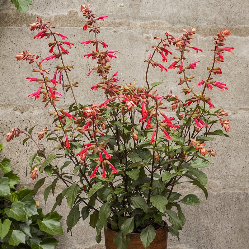 Szałwia 'Ember’s Wish’ to efektowna, długokwitnąca odmiana szałwii ozdobnej o bujnym pokroju i intensywnie zabarwionych, egzotycznie wyglądających kwiatach w odcieniu koralowo-pomarańczowym. Należy do australijskiej serii „Wish” (Salvia ‘Wish Collection’), stworzonej z myślą o ogrodnikach poszukujących roślin wysoce dekoracyjnych, łatwych w pielęgnacji i przyjaznych dla zapylaczy. 'Ember’s Wish’ łączy w sobie elegancję i intensywny, niemal tropikalny kolor, dzięki czemu natychmiast przyciąga wzrok na rabacie, w donicy czy kompozycji tarasowej.