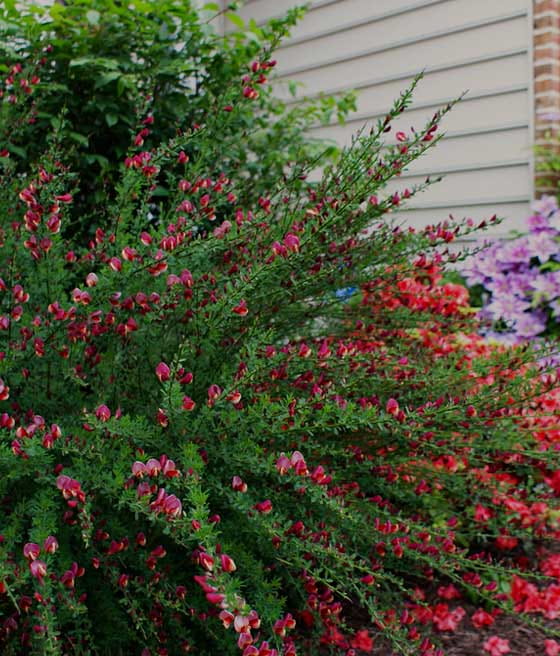 Żarnowiec 'Burkwoodii’ to niezwykle dekoracyjna roślina, która sprawdzi się w wielu kompozycjach ogrodowych: